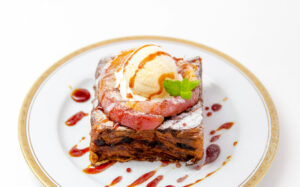 温かいフレンチトーストと冷たいバニラアイスの組み合わせや、