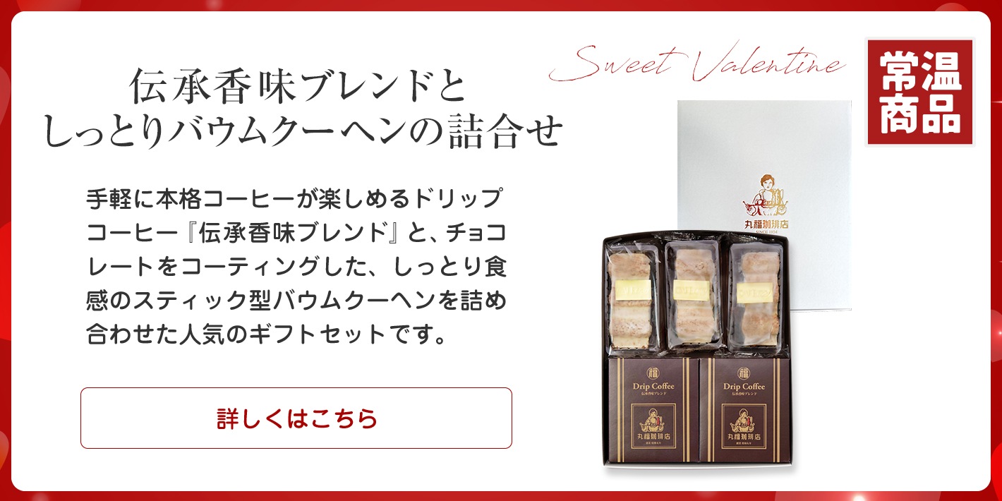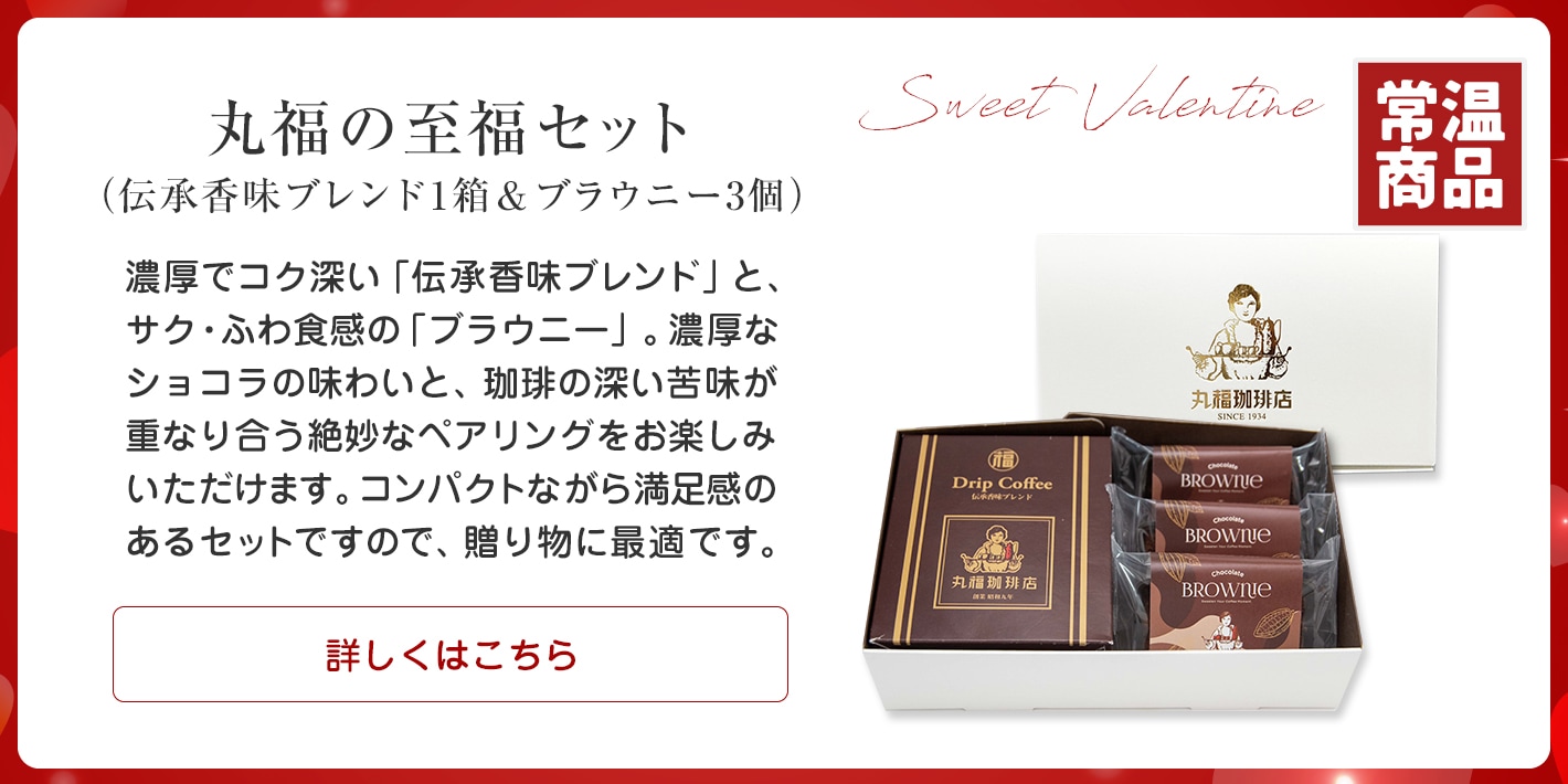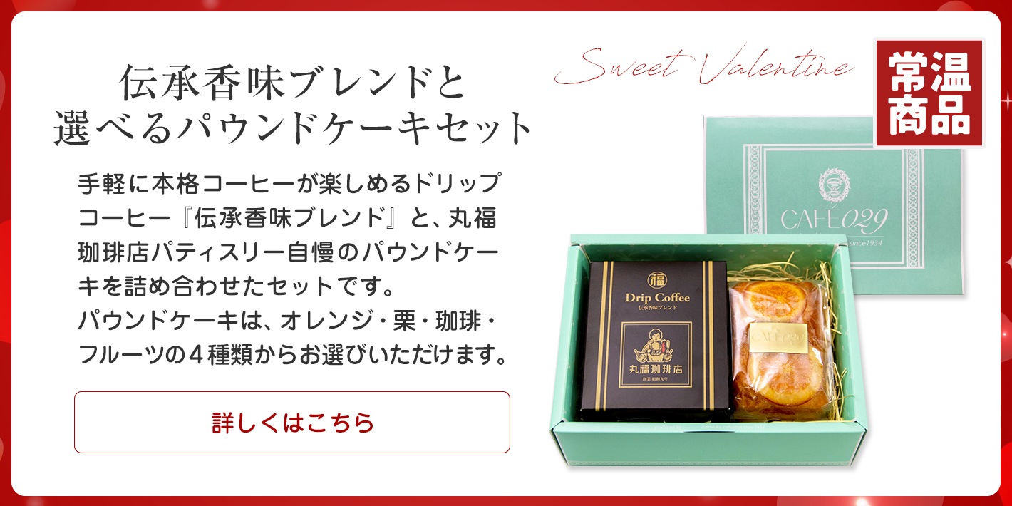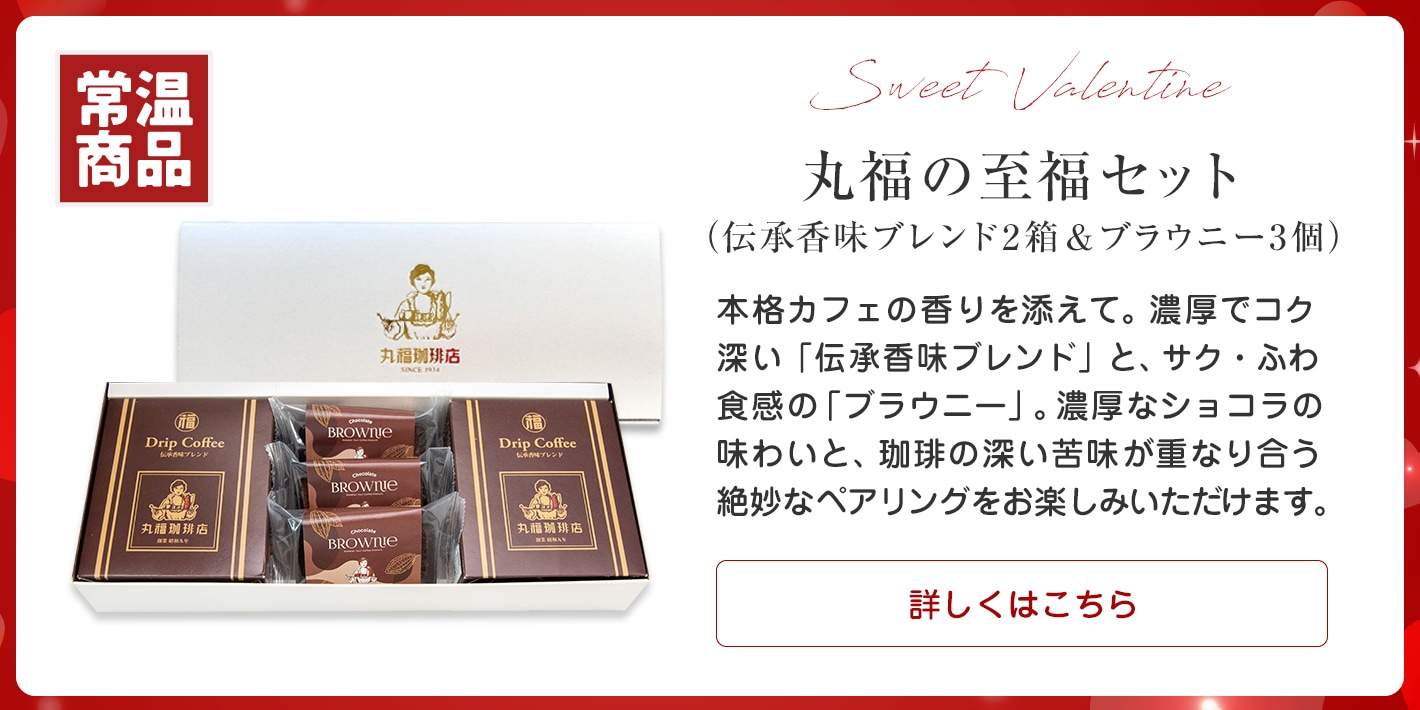 大切な人へ、いつもお世話になっている方へ。 香り高い珈琲と、心までほどけるスイーツ。 丸福珈琲店が贈る、バレンタインへ向けての 特別なマリアージュをお届けします。 バレンタインはもちろん、日常のちょっとした贈り物や、 ご自身へのご褒美としてもおすすめです。