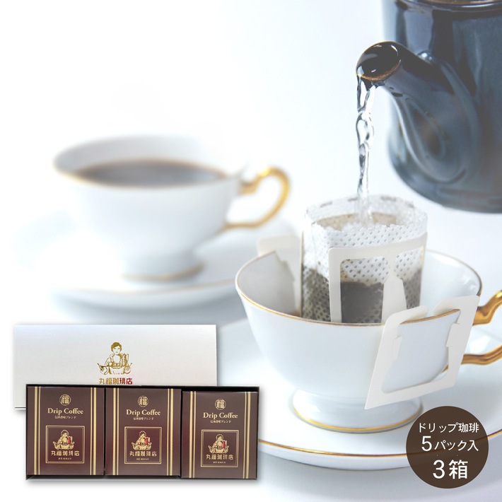 一杯のコーヒーを美味しいものにするために90年以上に渡って拘り続けた、香り高くコク深い丸福オリジナルブレンドです。長きに渡って愛され続ける丸福の定番。5パック入×3箱セット。